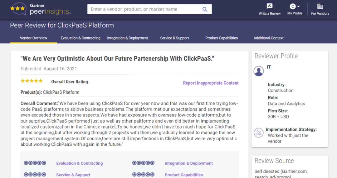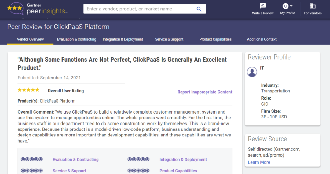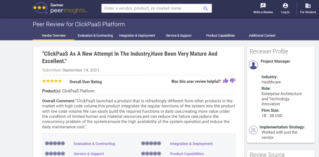 Tips::【Peer Insights】——用户对企业IT产品和服务发布真实评价的平台。。目前已有355个市场,,255,000条经过验证的评价。。。。每一条评价Gartner会针对参评企业营收规模及参评人员信息做验证、、、、评价内容做多维核实。。。。